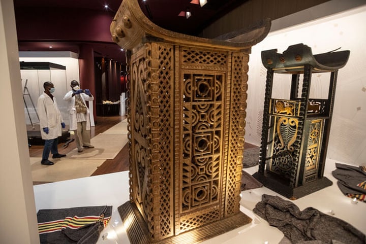 Paris has returned 26 royal antiquities looted by French soldiers in the late 19th century. The haul, including statues, thrones and palace doors, began the journey to Cotonou, Benin’s largest city, in November, before an exhibition at the presidential palace, and a ‘royal tour’ now in progress across the country